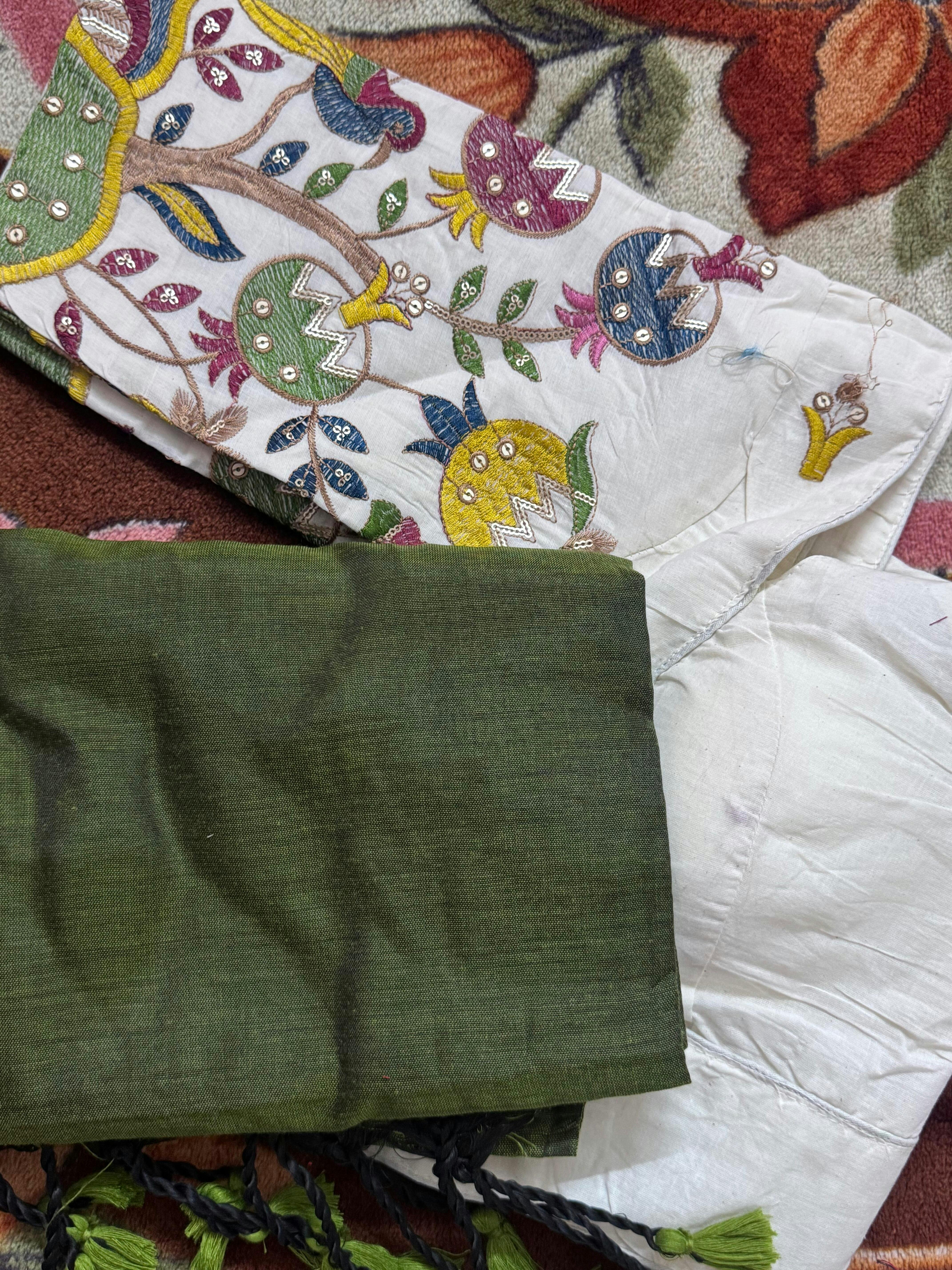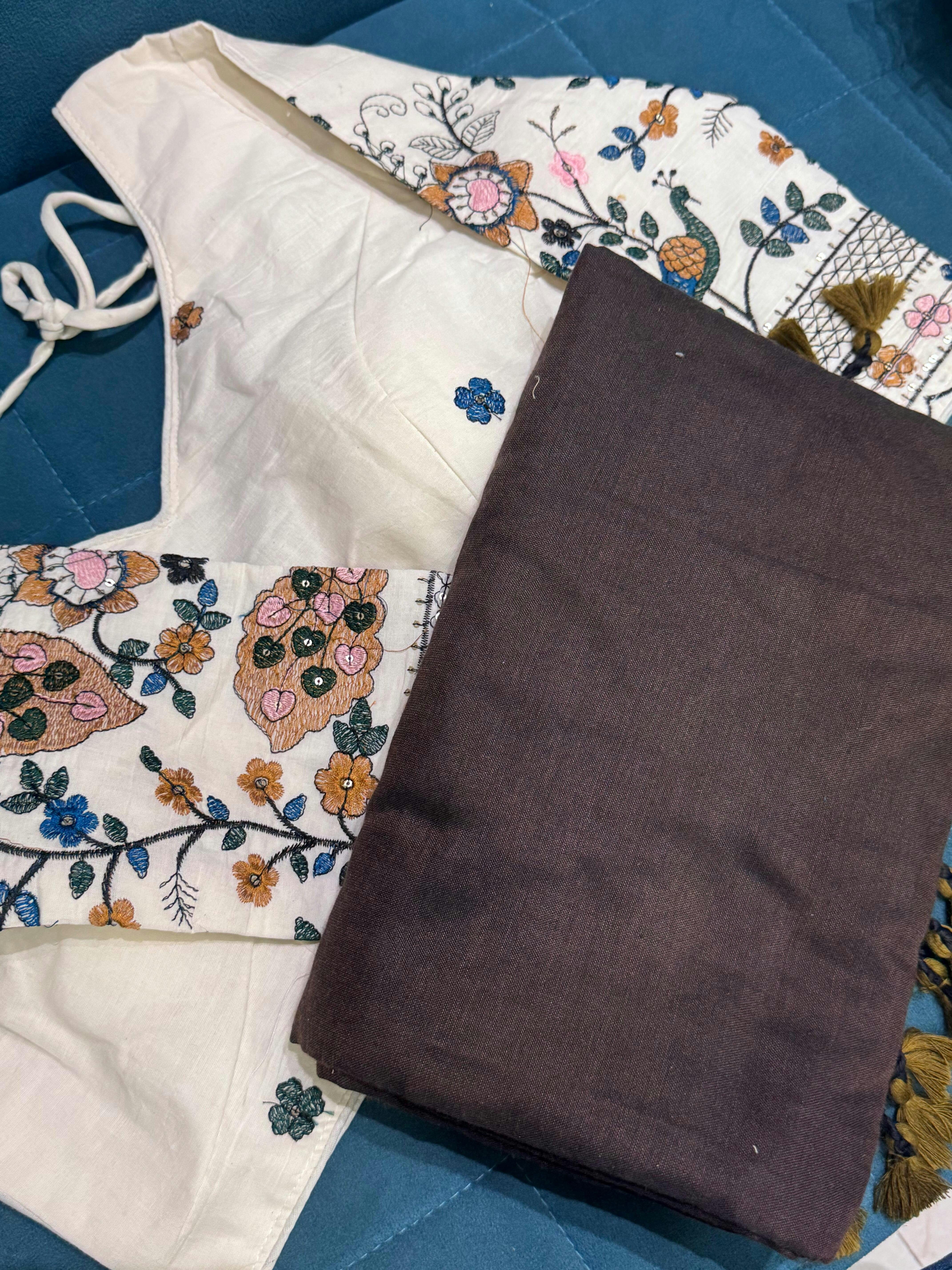 Grace in Grey: Discover Subtle Elegance with the Grey Handloom Cotton Saree with Floral Printed Blouse